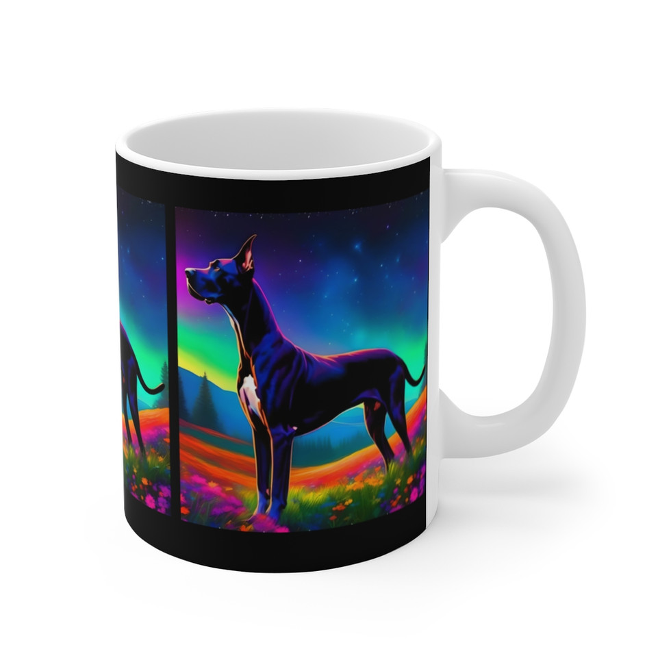 Black Great Dane Dog mug, from our neon sky collection. A unique colorful and vibrant high resolution print.